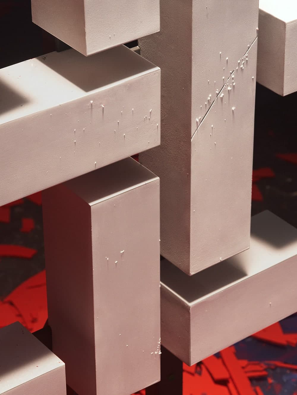 Visually, the idea was to start almost abstract as if we were looking at a geometric composition made of coloured lines and blocks. As the camera dives into the scene, we progressively understand the geometry of the scene revealing a giant gridlike industrial perspective.