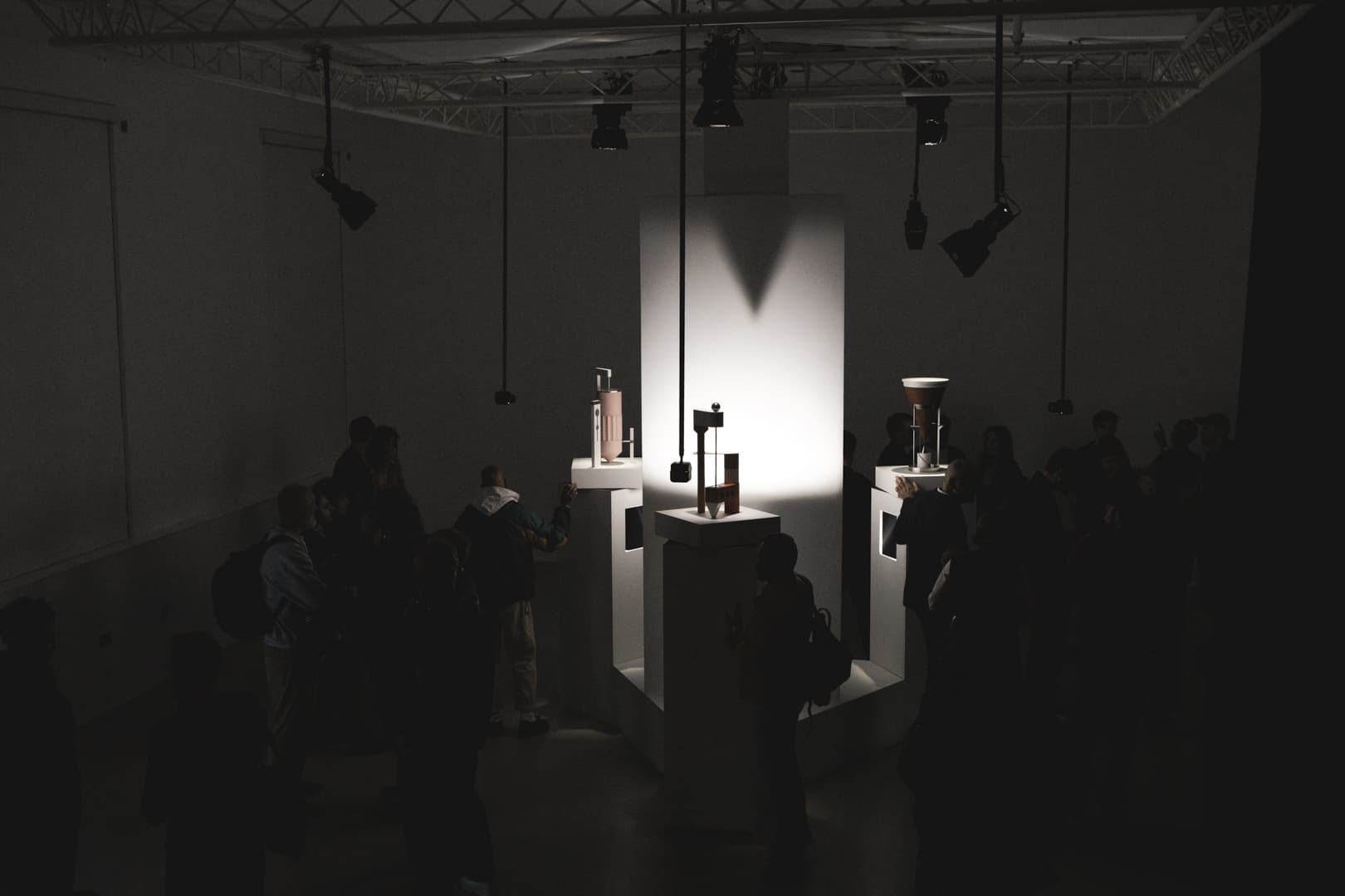 An interactive installation created for London Design Festival 2024, "Immaterial Objects" investigates the moment when an object is no longer perceived as tangible but drifts into something artificial, fetishised and disembodied. The installation is a hands-on kinetic exhibit, using physical sculptures, animation and digital technology.