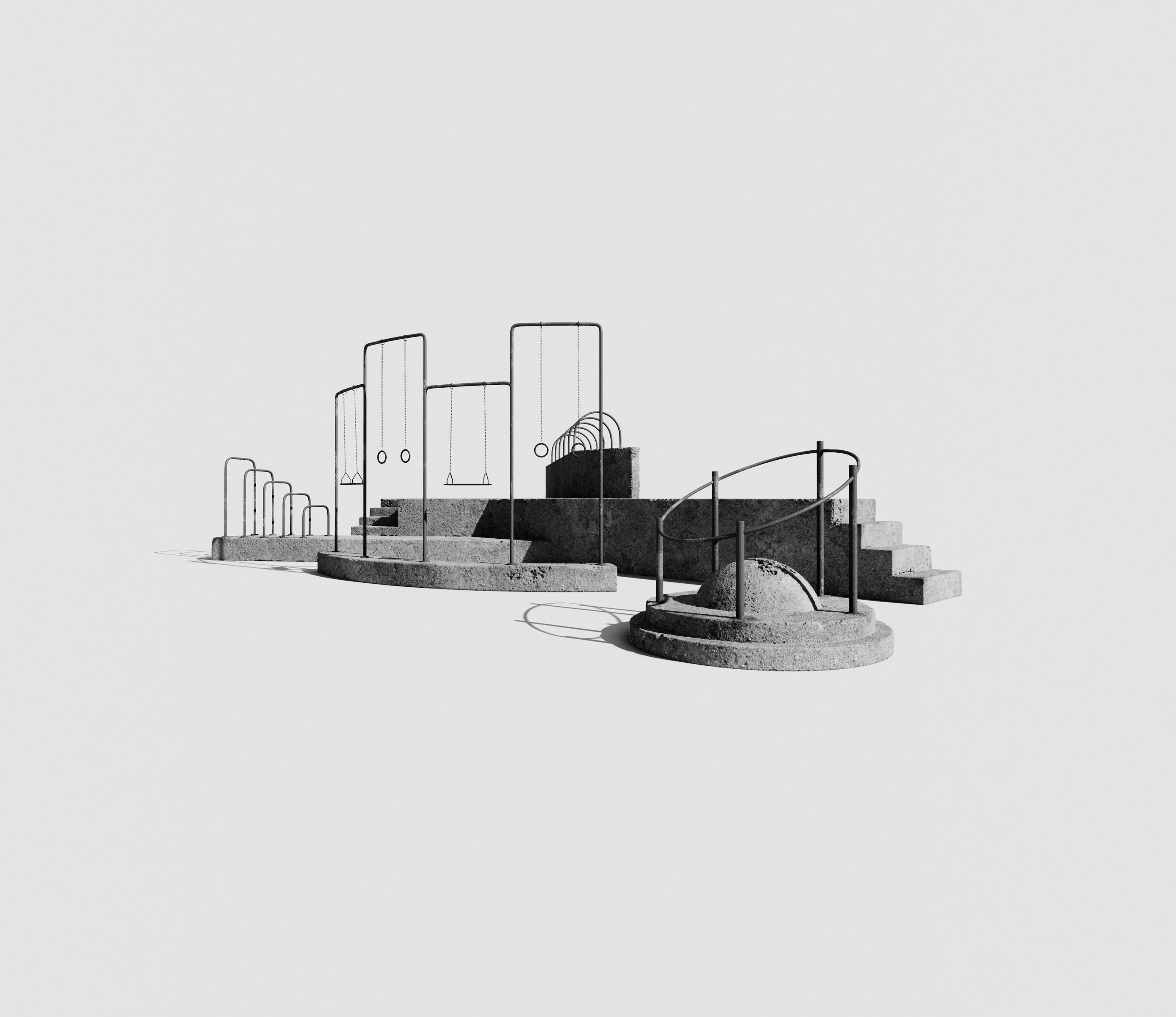 Taken away from their original contexts, these structures, once representing a world of fun and possibility, become simple arrangements of sculptural forms. Using light as a catalyst, we play with the interaction of shapes and shadows to reveal their architectural nature. We contemplate these now lifeless kids’ playgrounds through the nostalgic view of an adult. For a brief moment, the past and present are reunited together.