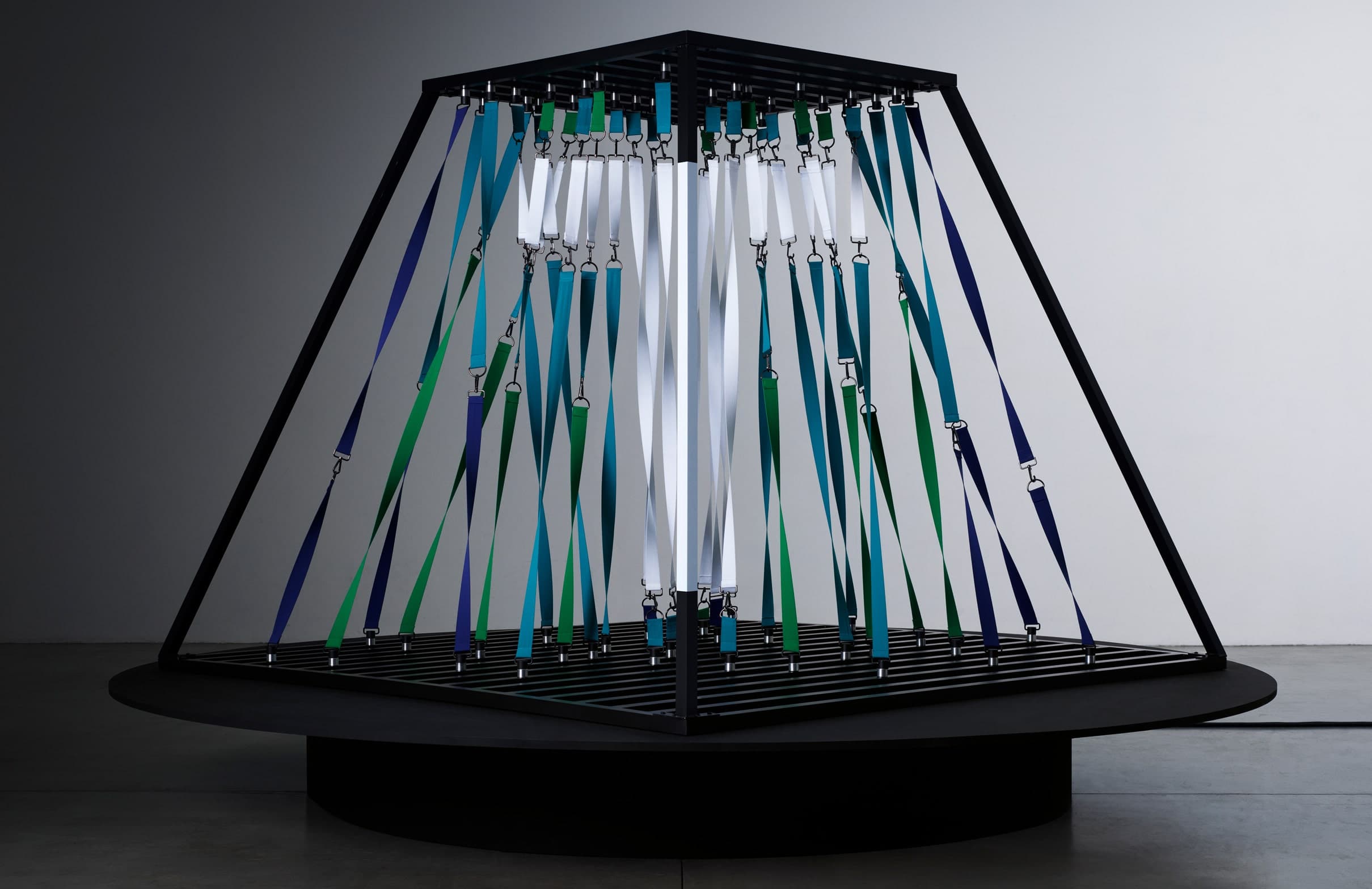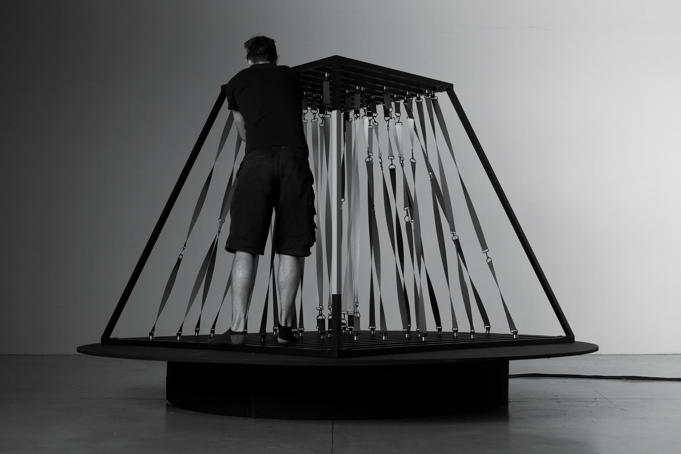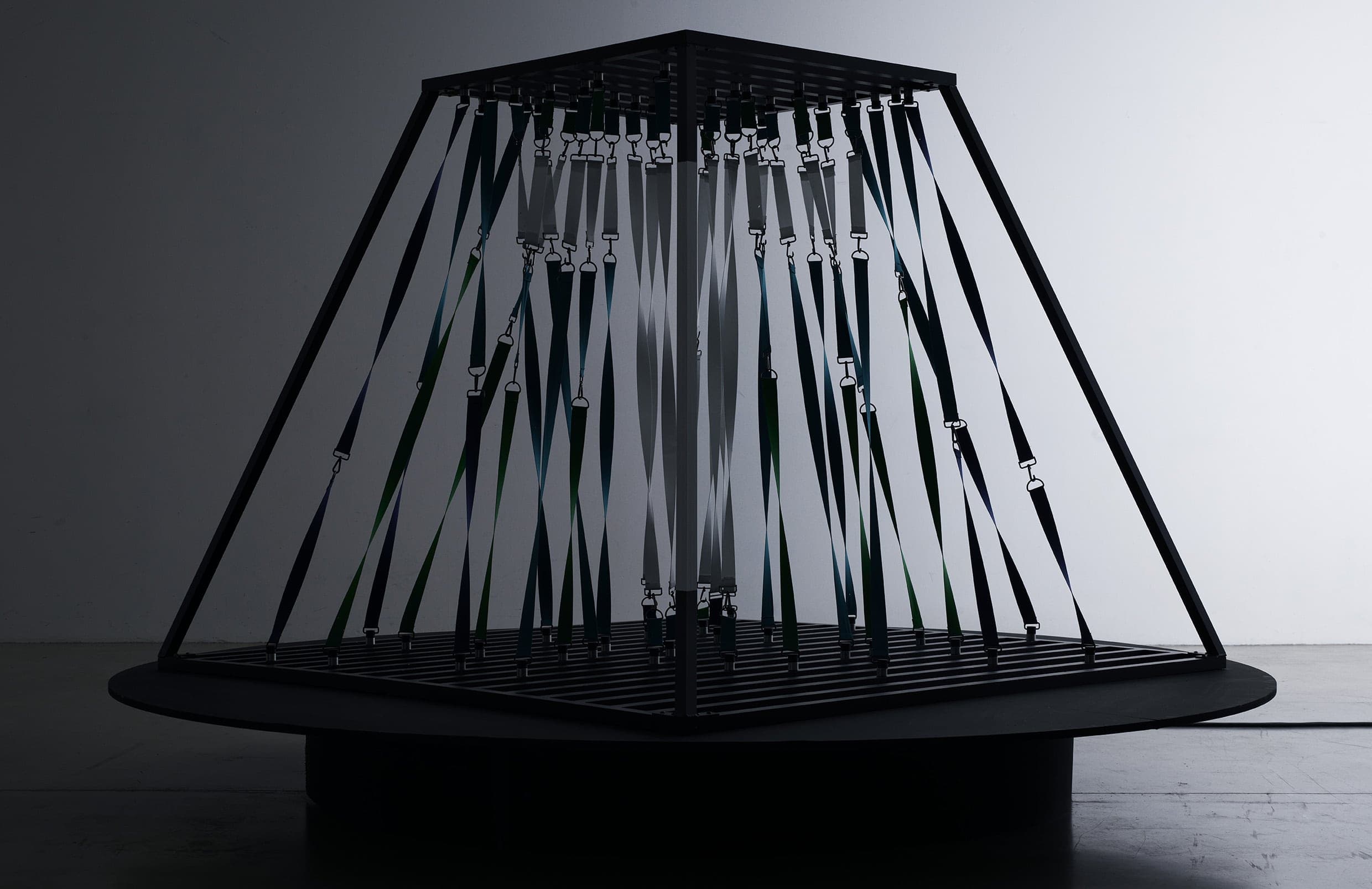 Letter T is an exploration into the forces of attraction; it combines elasticity, magnetic and gravitational forces within a single structure.