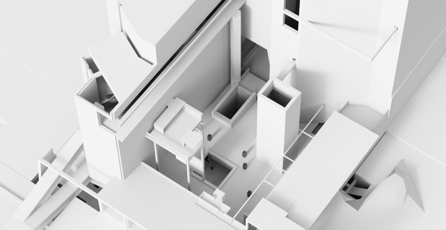 The building had to be designed precisely in the context of the film’s narrative as the layout and structure defined when each element, room and character appears and disappears. Due to the large amount of detail, several iterations were necessary to find the right balance between complexity and readability. Throughout the project various style frames were developed to explore the different materials for the building.